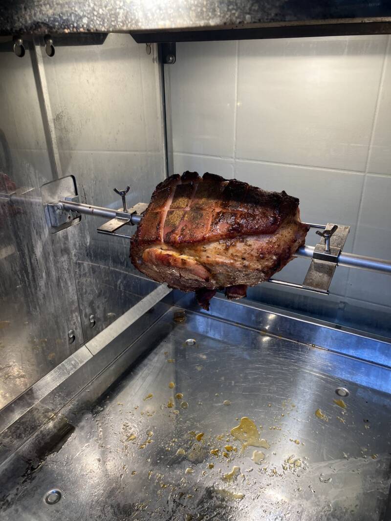 poulets fermiers label rouge, andouillettes de chablis, jambon a la broche